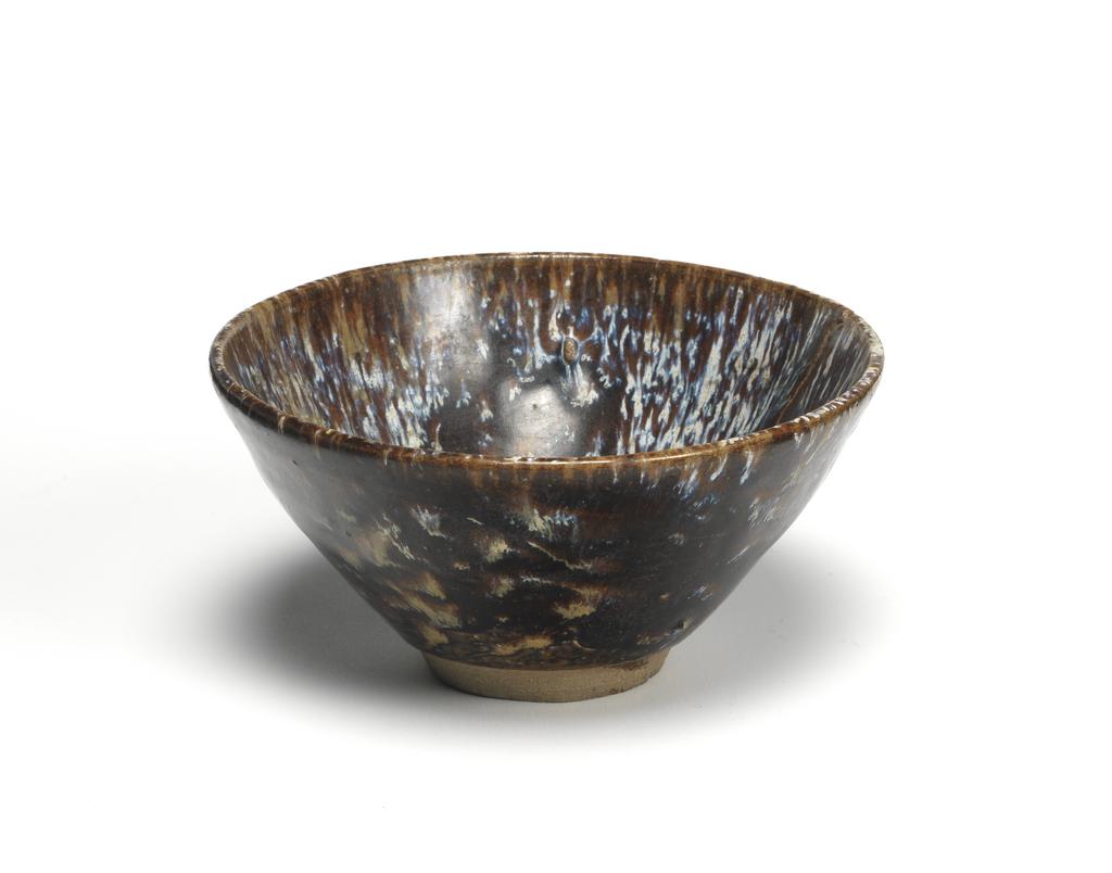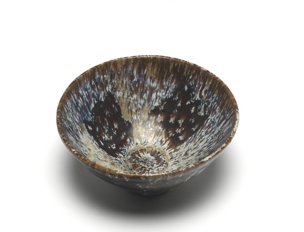 宋代是中国陶瓷发展的鼎盛时期,制瓷业空前繁荣,出现了汝窑、官窑、哥窑、钧窑、定窑等五大名窑,同时,各地的民窑也蓬勃发展,吉州窑便是其中极具特色的一座。吉州窑位于今江西吉安,其制瓷工艺精湛,尤以黑釉瓷著称,玳瑁釉是吉州窑黑釉瓷中的名贵品种。宋代茶文化盛行,上至皇室贵族,下至平民百姓,都对饮茶有着浓厚的兴趣,斗茶之风更是风靡一时。斗茶讲究茶具的精美,吉州窑的玳瑁釉盏因其独特的釉色和适宜的造型,成为当时斗茶的佳器。这件玳瑁釉盏,不仅是宋代吉州窑制瓷工艺的杰出代表,也反映了宋代的茶文化和社会风貌,是研究宋代陶瓷史和社会生活史的重要实物资料。然而,近代以来,由于列强的侵略,大量像这样的珍贵宋代文物流失海外,成为中国文化遗产保护中的遗憾,也时刻提醒着人们铭记历史,重视对文物的保护和传承。