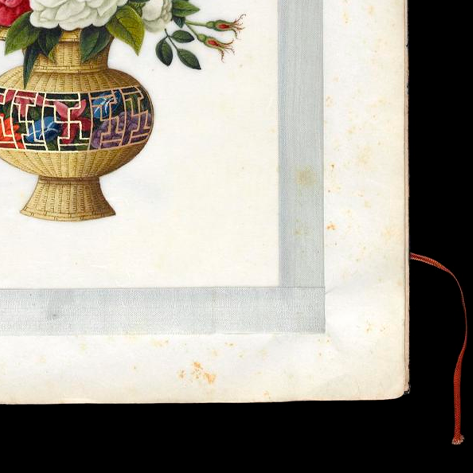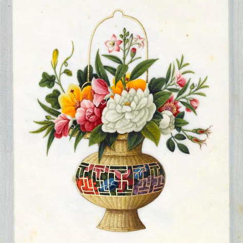 清代时期,中国的外销艺术品在国际市场上颇受欢迎,通草画作为其中一种独特的绘画形式,深受西方人的喜爱。当时,许多西方商人、游客来到中国广州等沿海通商口岸,大量收购通草画等特色商品。这些通草画被带回西方后,或作为个人收藏,或进入博物馆。这件花卉篮瓶图通草画,很可能是被西方商人购买后,带回欧洲,随着时间的推移,经过多次私人收藏流转,最终被剑桥大学费兹威廉博物馆纳入收藏。
