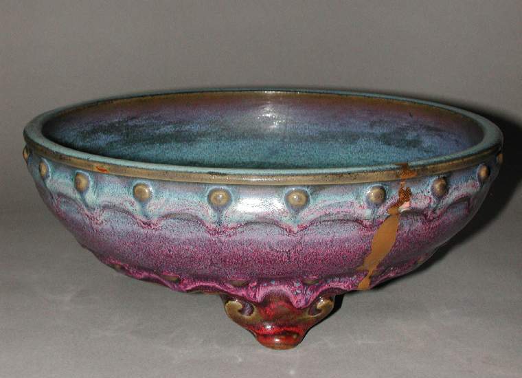 北宋钧窑玫瑰紫釉鼓钉三足洗
