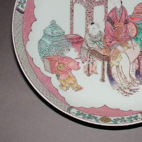 清代雍正时期,社会经济繁荣,文化艺术蓬勃发展,制瓷业也达到了一个新的高峰。雍正粉彩是清代粉彩瓷器的代表,它在继承康熙粉彩工艺的基础上,有了进一步的发展。此时的粉彩瓷器,运用了 “玻璃白” 打底,使得色彩更加柔和淡雅,层次更加丰富,画面更加细腻逼真。雍正粉彩的纹饰题材极为广泛,涵盖了人物、花鸟、山水、瑞兽等诸多方面,反映了当时社会文化的丰富多彩和人们对美好生活的向往与追求。这件粉彩仕女婴戏纹盘,就是雍正粉彩的典型代表,它不仅体现了雍正时期制瓷工艺的精湛水平,也从一个侧面反映了当时的社会生活风貌和文化艺术氛围。仕女婴戏题材的纹饰,寓意着多子多福、家庭和睦,符合中国传统的吉祥文化内涵。然而,近代以来,由于列强的侵略,大量像这样的清代珍贵文物流散海外,这件雍正粉彩仕女婴戏纹盘就是其中之一,它的流失是中国文化遗产的重大损失,也时刻提醒着我们要铭记历史,加强对文物的保护与追索,守护好中华优秀传统文化的根脉。