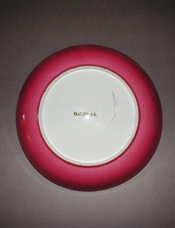 材质与色泽:采用优质瓷土烧制而成,胎体细腻坚致,密度高且质感厚重,敲击时声音清脆悦耳。盘的正面以粉彩绘制纹饰,粉彩颜色丰富柔和,有红、粉、绿、黄等多种色彩,色彩搭配和谐雅致,展现出雍正粉彩 “色彩柔和、粉润光泽” 的典型特点,给人以清新雅致的视觉感受。盘的背面施有鲜艳的胭脂红釉,釉色均匀饱满,色泽艳丽,与正面的粉彩纹饰形成鲜明对比,更显器物的精美。