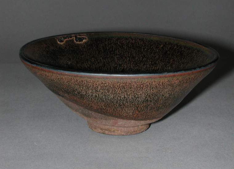 整体造型:盏为敞口,斜腹,小圈足,整体造型简洁大方,线条流畅自然,符合宋代斗茶盏的典型造型特征,是当时人们进行斗茶活动时常用的器具。