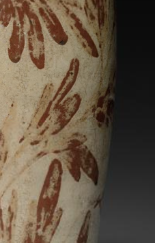 本品规格为42.9 厘米。整体瓶身修长,小口,口沿处略微外撇,短颈,丰肩,肩部以下逐渐内收,至底部微微外撇,呈现出典型梅瓶的优美线条。瓶盖小巧,与瓶口相适配。瓶身以褐彩绘制花卉纹饰,主体花卉图案位于瓶身中部,花朵造型较为饱满,花瓣舒展,富有张力。花朵之下绘制有叶片,叶片形态各异,线条流畅,与花朵相互映衬,整体纹饰布局疏密得当,既不显得单调,也不会让人觉得繁杂,体现了北宋时期瓷器装饰艺术的审美风格。