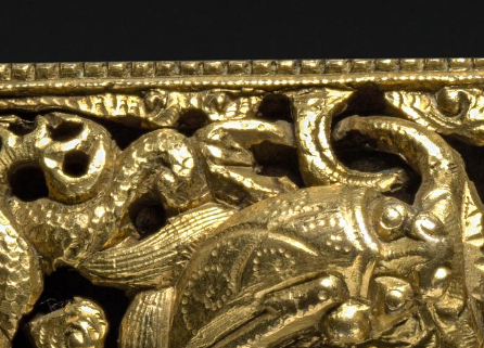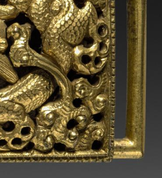 民国鎏金镂空双龙戏珠纹带扣