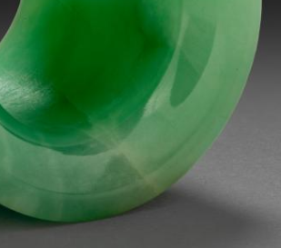 在民国时期,扳指是一种重要的装饰配饰,常佩戴于拇指之上。满绿翡翠扳指因其珍贵的材质和艳丽的色泽,成为身份与地位的象征,备受达官显贵、文人雅士的喜爱,能够提升佩戴者的气质,彰显其高雅品味和尊贵身份。