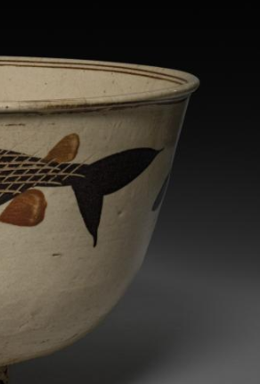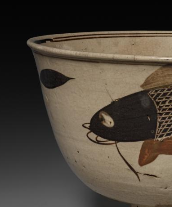 明代磁州窑白地黑彩褐彩鱼纹大碗