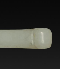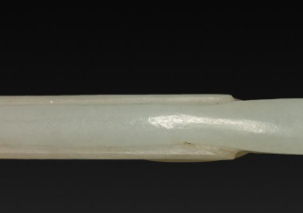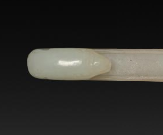 在清代,带钩主要用于束系腰带,起到固定和装饰腰带的作用。这件白玉素面龙首带钩,凭借其优质的白玉材质和简洁大气的龙首造型,不仅具有实用的束带功能,还彰显了佩戴者的身份地位与高雅的审美品味,常用于贵族或官员的服饰搭配中,为整体着装增添华贵与庄重之感。