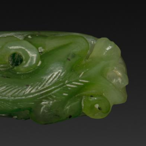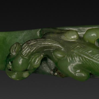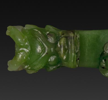 清代碧玉龙首螭纹带钩