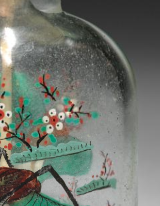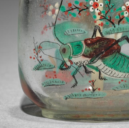 清代玻璃内画草虫花卉纹鼻烟壶