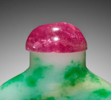 清代翡翠鼻烟壶(配碧玺盖)