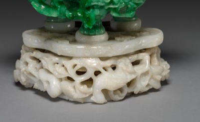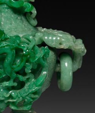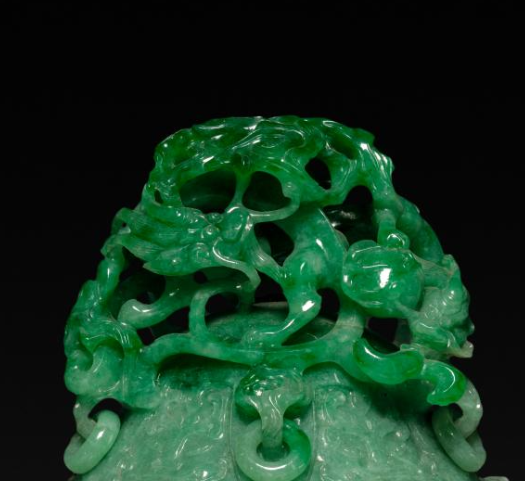 清代翡翠镂雕龙纹双耳活环香炉