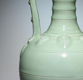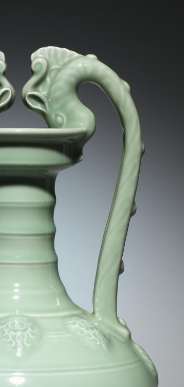 在清代时,此瓶造型独特,粉青釉色淡雅清新,双龙耳造型生动精美,具有极高的艺术观赏性,常被放置于室内厅堂、书房等场所,作为陈设器物,起到装饰空间、彰显主人高雅审美品味与对传统艺术喜爱的作用,是清代贵族或文人阶层喜爱的陈设瓷器之一。