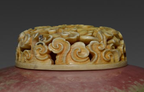 太白尊在清代主要作为文房用具,可用于贮存清水,供文人墨客研磨墨汁时使用,是书房中兼具实用与观赏价值的器物。这件带有精美暗刻纹饰和镂空木盖的太白尊,不仅能满足文房实用需求,其独特的豇豆红釉色、细腻的暗刻工艺以及精致的木盖,也使其成为具有较高艺术与收藏价值的文房雅器,彰显主人的文化品位与审美情趣。