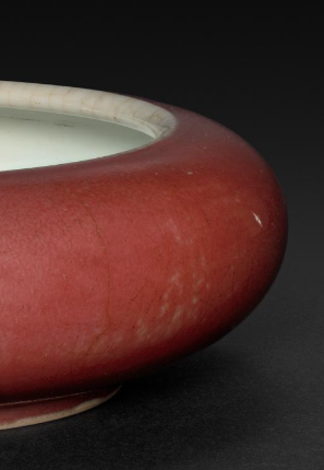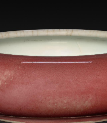 本品规格为直径8.6厘米,高度3.9厘米。整体呈圆形笔洗造型,器型圆润饱满,口沿较宽,腹部线条流畅自然,底部为圈足,造型规整,给人一种端庄秀丽的感觉。以瓷土为胎,施豇豆红釉。瓷胎细腻,豇豆红釉色泽如豇豆般,呈现出淡雅的粉红色,且釉面布满天然形成的斑点、晕散等变化,富有层次感与天然意趣,部分区域还带有绿色苔点,更显别致。