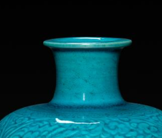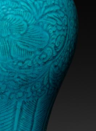 清代孔雀绿釉剔刻牡丹纹梅瓶