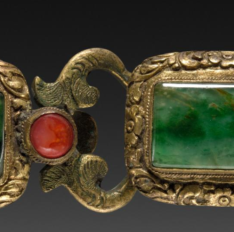 清代鎏金嵌翡翠珊瑚带扣