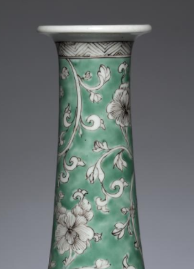 清代绿地墨彩缠枝花卉纹长颈瓶