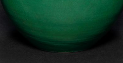 本品规格为30.2 厘米。以瓷土为胎,施绿釉。釉色浓郁鲜亮,呈现出饱满的绿色,釉面光滑,带有瓷器特有的光泽,质感温润。整体为天球瓶造型,瓶颈细长,瓶腹浑圆饱满,形似天球,线条流畅自然,比例协调,给人一种端庄大气且圆润柔和的视觉感受。