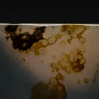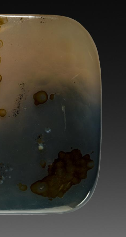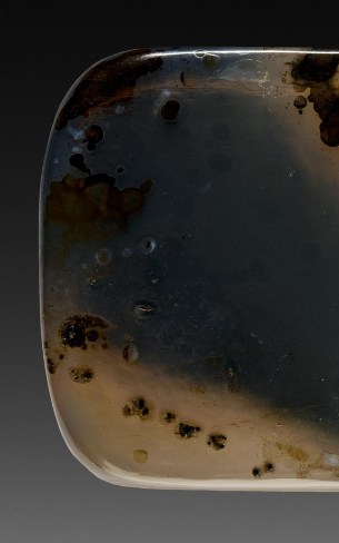 本品规格为8.4 厘米。由玛瑙制成,玛瑙质地温润,整体呈现出半透明的质感,色泽丰富且自然,有灰、棕、黄等色调相互交织,形成了独特的纹理与色彩层次,仿佛天然的山水画卷或云雾缭绕之景,尽显玛瑙材质的天然之美与独特韵味。整体呈长方形,边角经过打磨处理,线条流畅,表面光滑,工艺简洁却能很好地展现出玛瑙本身的材质特点与自然纹理,给人一种古朴、雅致的感觉。