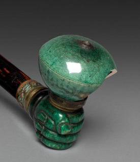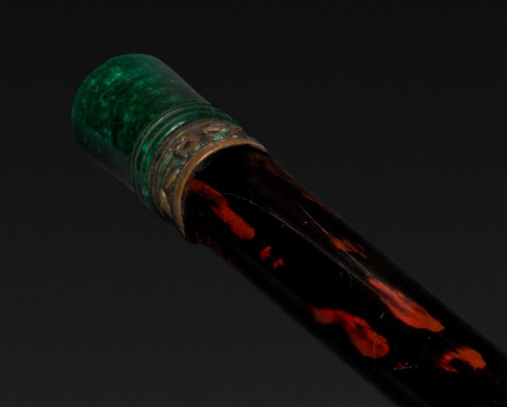 清代漆艺镶绿釉瓷烟杆