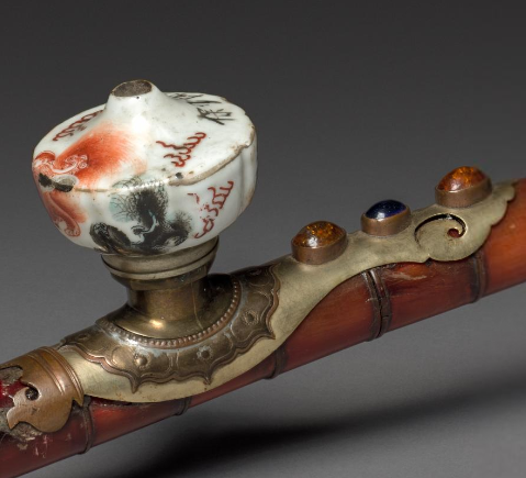 主要用于吸食烟草。在清代,吸烟是较为普遍的社会行为,这类烟杆是当时人们常用的吸烟工具,方便人们取用和吸食烟草,满足日常的吸烟需求。