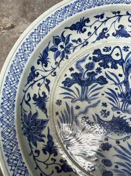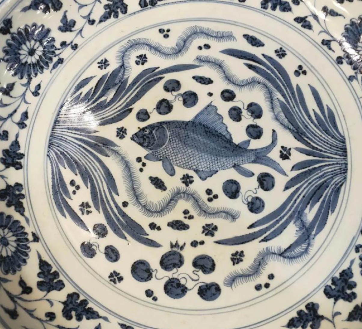 元代景德镇采用“瓷石+高岭土”的二元配方提升胎体强度,并大规模应用进口钴料(苏麻离青),使青花发色浓艳并形成独特的铁锈斑效果。鱼藻纹折沿盘作为釉下彩瓷的典范,标志着从素瓷向彩瓷的过渡