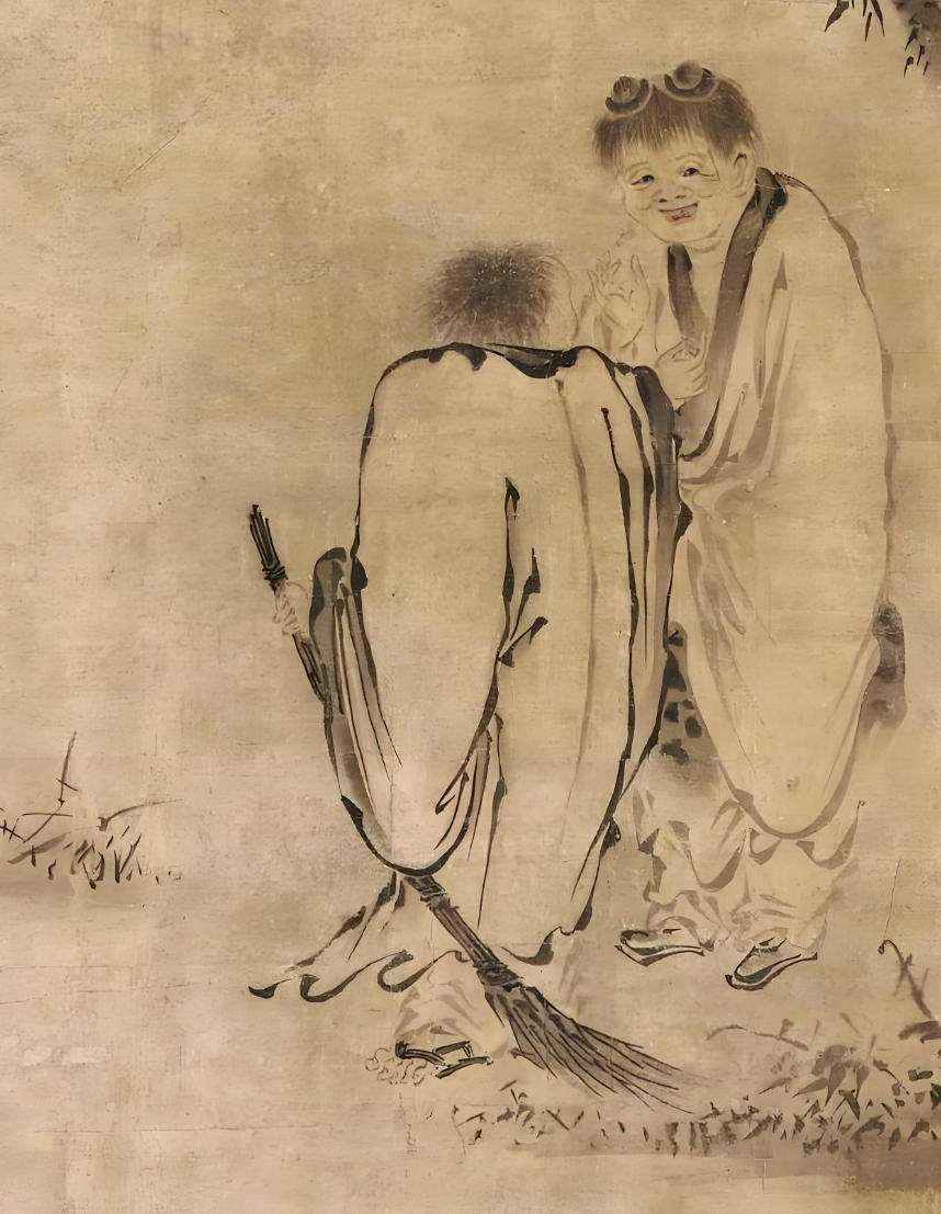 日本在明治维新之前,曾深受禅宗佛理的影响,并衍生出一种具有日本特色的审美意识。早年流入日本的中国禅画也因此备受日本人的珍视,被视为国宝级的文物。目前收藏在日本东京国立博物馆的《寒山拾得图》,就是这样一幅隐含机锋的禅机图,