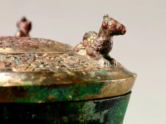 多为圆体或扁体,侈口、长颈、鼓腹,高30-50厘米,肩设铺首衔环耳,盖钮设计:盖顶常见伏兽钮或环形钮,如故宫藏狩猎纹壶为双伏兽钮。狩猎纹壶:分四层饰狩猎场景,宽带纹间隔三角云雷纹,红铜镶嵌人物与兽形动态逼真。龙纹扁壶:腹部菱形纹与回首龙纹组合,颈部饰半回首鸟纹,红铜纹饰坑窝密布