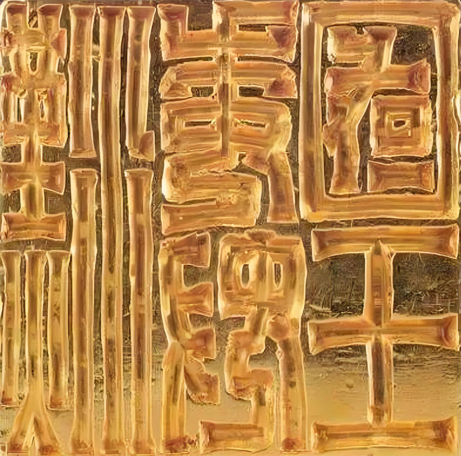 汉委奴国王金印为金质蛇纽,正方形,阴文,篆体奇古。 [2] [4-5]用篆书分三行撰写了“汉委奴国王”五个字。“汉委奴国王”这五个字,端庄朴茂,其结构紧凑,线条畅劲,是典型的汉代印篆。“汉委奴国王”中的“汉”字,与汉代印章中一般写法不同,右面的一长竖断开,右下部变成了“火”。这种形态,比较少见。