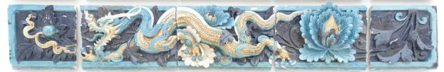 盗凿与损毁(清末民初):清末战乱中,构件从原寺庙屋脊被暴力拆解,为便于运输遭切割分块,造成不可逆的结构损伤。盗取后曾被重组为四排装饰壁板,原22块中舍弃2块以维持形式规整,后因保存不当又缺损部分砖块。