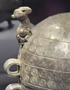 青铜敦(盛食器),春秋战国时期典型器型,以器盖与器身对称的球体造型著称。主体饰“涡纹”(亦称火纹),由中心圆点辐射螺旋曲线,象征太阳或火焰,多与龙纹、蟠螭纹组合出现,体现周代“天道循环”宇宙观。采用失蜡法铸造,涡纹线条细密流畅,需超高精度陶范;部分战国晚期敦出现错金银工艺(如馆藏“错金银兽尊”),涡纹间隙嵌金银丝强化光影层次。