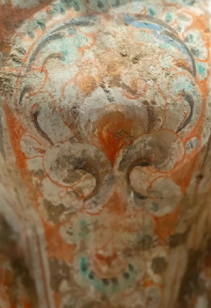 4. 保存:陶胎完整,无明显碎裂,彩绘因氧化略有剥落,尤其在棱角处磨损较甚,但主体色彩(红、绿)仍清晰可辨,底座有轻微磕碰痕迹。