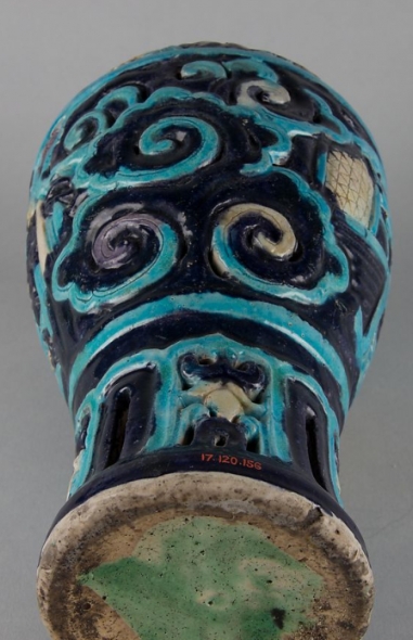 法华釉创烧于元代山西,明代晋南匠人改良为陶胎精品,其工艺受佛教珐华器影响,但纹饰转为道教题材。正德年间景德镇曾仿烧瓷胎法华,终因釉料配方失传而绝迹。清乾隆时期宫廷档案称"法华器存世者,十不得一"。