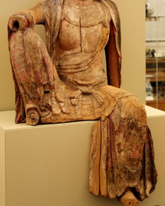 宋代木雕彩绘水月观音