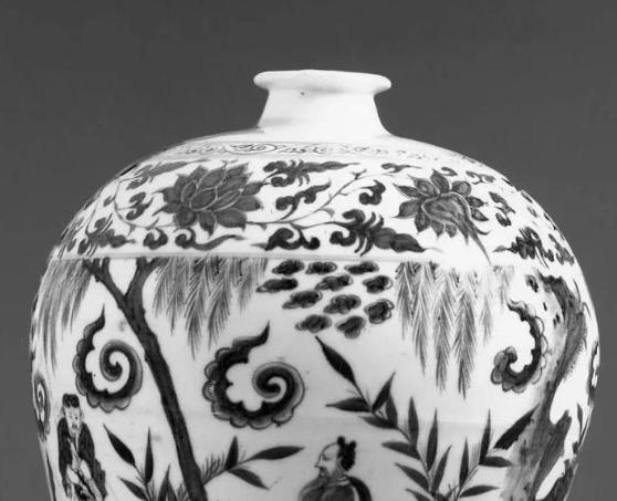 元青花缠枝牡丹纹梅瓶的42.4厘米的高度和优雅造型,彰显了元代瓷器的雄浑豪放。该梅瓶线条流畅,装饰技艺精湛,人物形象栩栩如生,展现了匠人的卓越智慧与精湛技艺。它是元代制瓷工艺巅峰之作的见证,不仅体现了当时的文化氛围与精神气质,还是中西方文化交流的重要载体,承载着丰富的历史与艺术价值。