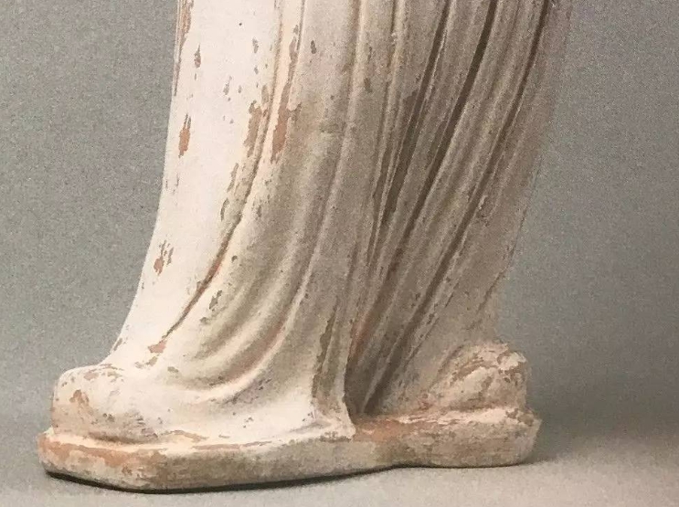 具有典型唐代女性丰腴之美特征。发髻样式独特,身着长裙,双臂交叉于胸前 ,面部圆润,神态安详,是唐代陶俑艺术的代表之作,反映了当时的服饰风格、审美观念和制陶工艺水平。
