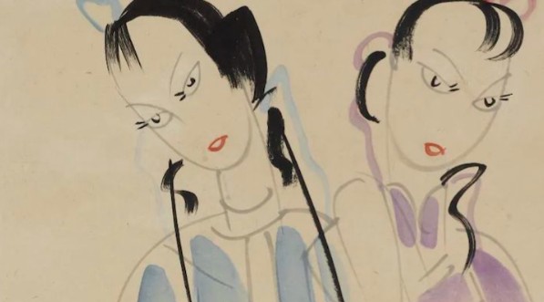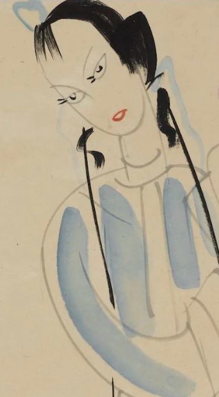 1940 年代林风眠避居重庆,潜心以水墨表现戏曲人物,开创“新仕女图”风格。该作将《西厢记》故事凝练为双人特写,既保留传统戏剧含蓄之美,又引入西方现代形式语言,成为其融合中西美学的里程碑,亦是赛努奇博物馆收藏林风眠戏曲人物系列的最早作品之一