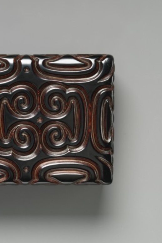 明代是雕漆工艺的鼎盛时期,剔犀作为雕漆的重要门类,以黑红等色漆分层髹涂后雕刻花纹为特点,16 世纪的明代在技法上已相当成熟。此漆盒用于盛放文件,与文人的日常文化生活相关,其色彩搭配与纹饰设计反映了当时社会对古朴雅致风格的追求,为研究明代雕漆工艺的技术特征、器物功能与审美取向提供了实物依据。