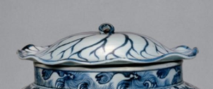 元代景德镇窑青花骑马人物纹壶,为民间窑场集体创作。其胎体采用 “瓷石 + 高岭土” 二元配方,釉面为青白釉,青花料用进口苏麻离青钴料,发色浓艳且有铁锈斑;高 33.2 厘米,壶体颈部饰缠枝菊纹,肩部为缠枝莲纹,腹部主体是昭君出塞图,昭君骑在一匹白马之上,怀抱琵琶,身着汉装,前后各有一胡服女子随行。画面中山石掩映,苍松翠柳杂衬其间,构图疏密有致,布局匀当,笔法娴熟,于山石云气间策马,青花线条流畅,釉面呈柔和哑光。此壶反映了元代多元文化交融特征,既含蒙古骑射文化元素,又有汉文化审美意趣,还借鉴伊斯兰艺术手法,苏麻离青的使用也暗示了对外贸易繁荣。