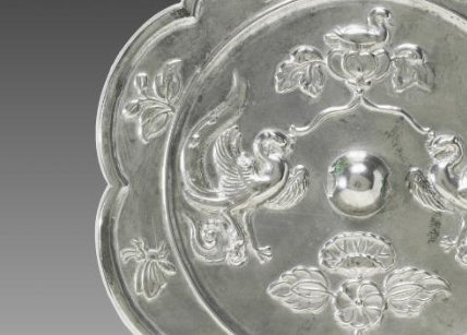 葵花形的独特形制以及鸾鸟花卉纹饰,是唐代审美风尚的鲜明体现。葵花形的设计突破传统圆形铜镜,展现了唐代人对创新和自然之美的追求;鸾鸟在传统文化中象征吉祥、高贵,花卉寓意美好、繁荣,这些纹饰的组合体现了唐代人对美好生活的向往和对高雅审美情趣的追求。拥有这面铜镜,彰显了使用者对唐代主流审美文化的认同和自身的文化品位。