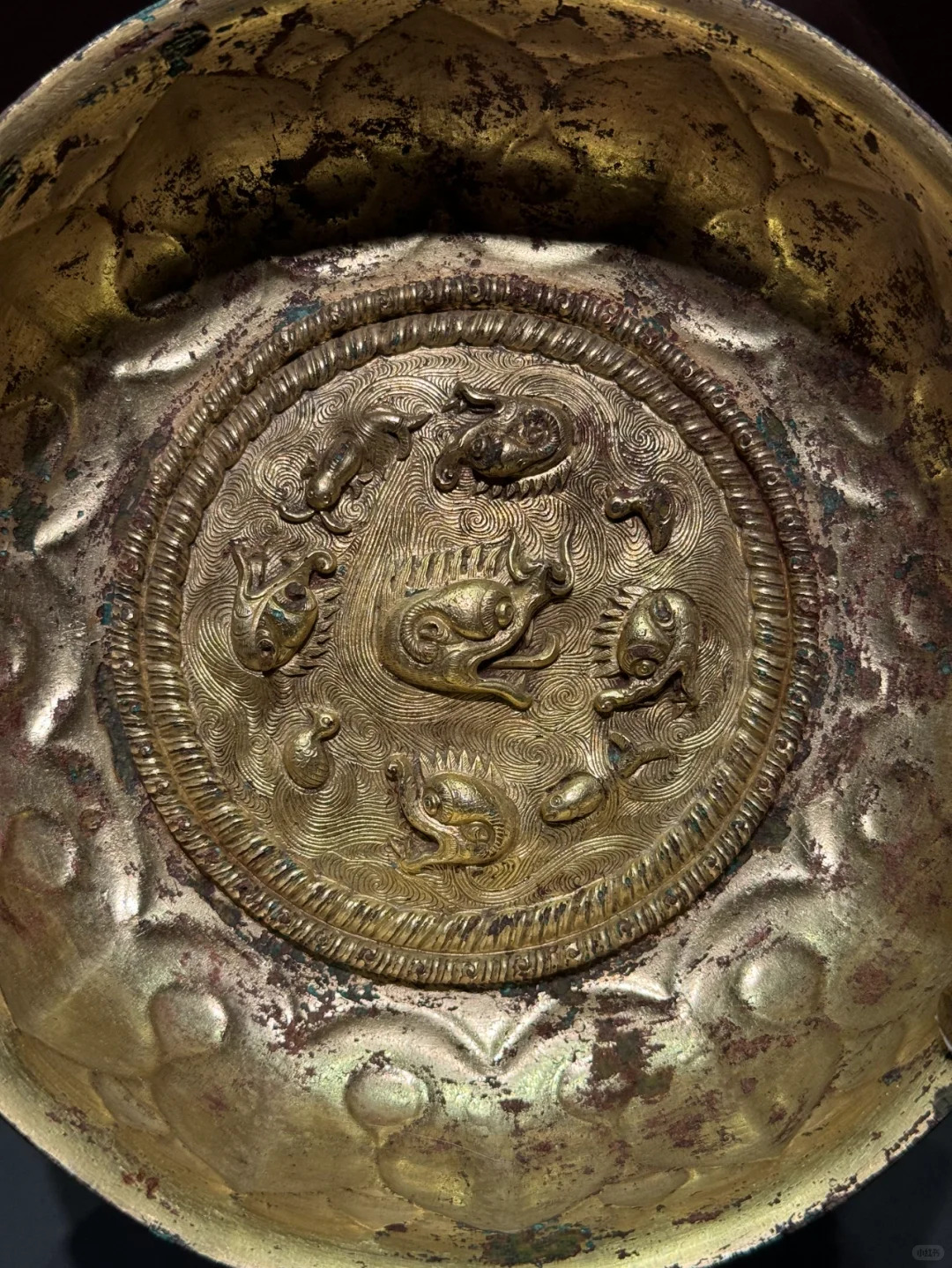 唐代摩羯海水纹铜鎏金碗