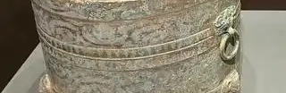 装饰细节:铜尊表面锈迹斑驳,呈现出岁月侵蚀后的古旧色泽,有绿色、褐色等锈斑交织。器身上装饰有多道凸起的弦纹,将器身划分为不同的装饰区域,弦纹规整且富有节奏感。在弦纹之间,雕刻有精美的纹饰,可能是云雷纹、蟠螭纹等传统的青铜器纹饰,这些纹饰线条细腻流畅,图案布局严谨,展现出西汉时期高超的青铜雕刻工艺。环形耳上可能也有简单的装饰,兽形足雕刻生动,形态逼真,增加了器物的艺术感染力。