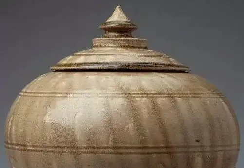 装饰细节:罐体施青釉,釉色泛黄,釉面有细小开片,分布自然,呈现出古朴的质感。在罐身中部,有多道弦纹环绕,简洁而规整,起到了装饰和分割罐体的作用。罐身还可见一些釉色流淌的痕迹,增添了器物的自然美感。盖子上也有简单的弦纹装饰,与罐身相呼应。