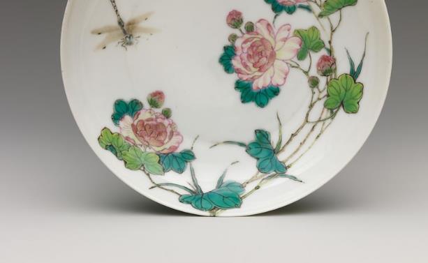 17 世纪末,一系列不透明釉上彩的创造是中国瓷器行业最重要的技术发展之一,这种盘上花朵的精致粉彩最早出现在 18 世纪初雍正皇帝统治时期,并在乾隆皇帝统治时期继续使用。