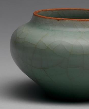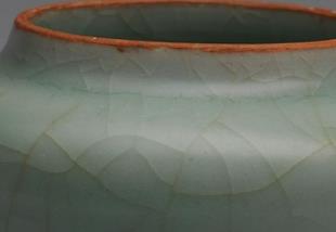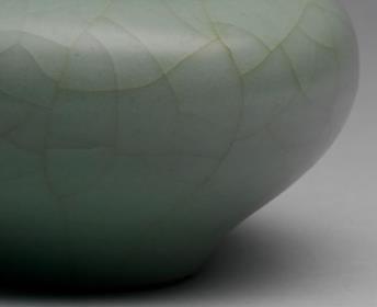 南宋龙泉窑青瓷罐整体造型多呈现出 “规整饱满、温润雅致” 的风格,常见器型为直口、短颈、圆肩、鼓腹,下腹逐渐内收,底部多为圈足,部分小型罐也有平底样式,整体比例协调,线条流畅柔和,无过多繁复装饰,尽显宋代 “简约尚雅” 的审美特质。器物胎体质地致密,胎色以 “灰白胎” 为主,部分优质作品胎色更趋近于白,胎体厚薄适中,既保证了器物的稳定性,又不会显得厚重笨拙。釉色是其最核心的艺术特征,典型釉色为 “粉青釉” 与 “梅子青釉