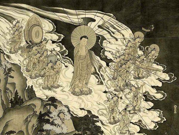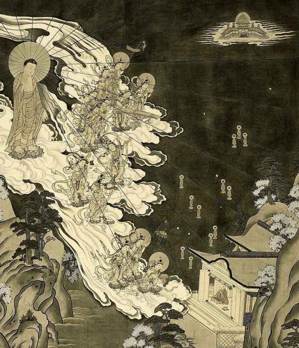 佛教自东汉传入中国后,经过长期的传播、融合与发展,在唐宋时期达到鼎盛。南宋至元代,佛教宗派众多,净土宗尤为盛行,其宣扬的通过念佛法门往生阿弥陀佛净土的思想深入人心。《阿弥陀二十五菩萨来迎图》就是在这样的宗教文化背景下产生的,是净土宗信仰的艺术体现。