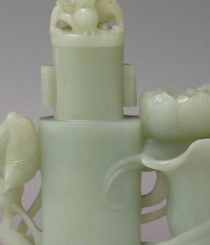 乾隆皇帝高度重视和田玉,认为 “和田玉为玉之正宗”,通过军事控制新疆地区,将和田玉矿纳入官方管控,每年通过 “贡玉” 制度向朝廷输送大量优质青玉、白玉料 —— 据《清实录》记载,乾隆二十五年(1760 年)后,新疆每年向宫廷进贡的和田玉达数千斤,为青玉莲荷纹瓶这类精工器物提供了 “原料基础”。