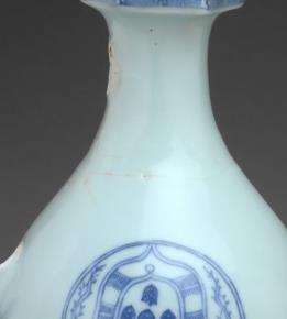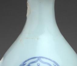 正德时期瓶类造型丰富,有梅瓶、双兽耳瓶、双耳瓶、出戟瓶、长颈瓶等。若为六方口瓶,可能具有正德时期琢器的一些特征,如多带底座,圆器圈足较浅,向内收拢,民窑器可见跳刀痕等。正德青花受伊斯兰教和道教影响,多装饰阿拉伯文、波斯文和吉祥图案。若为葡萄牙定制,可能会融入葡萄牙的徽章、浑天仪等元素,如上海博物馆藏的青花葡萄牙王室徽章纹盘,就绘制了葡萄牙王室的浑天仪标记。