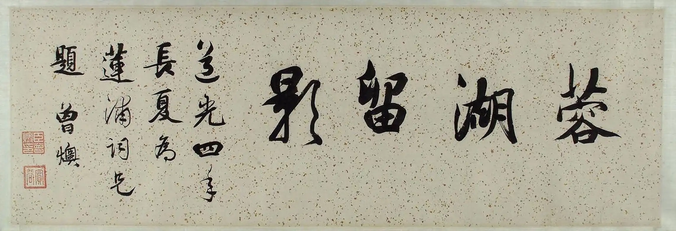 题跋与钤印:画面左侧有作者题款,注明创作时间为 “甲寅孟夏”,并署名 “莲浦居士属 樗草道人” ,明确了作品的创作背景与作者相关信息。右侧另有他人题跋 “蓉湖留影”,并题诗 “道光四季长夏为莲浦词兄题 曾燠”,还钤盖有多方印章,包括作者印章以及题跋者印章等,这些印章不仅是作品的重要组成部分,也是研究作品流传脉络的关键依据。因年代久远,纸张微微泛黄,有轻微的褶皱和磨损痕迹,但整体画面的笔墨神韵保存较好。