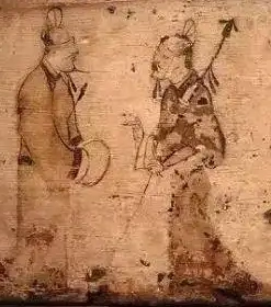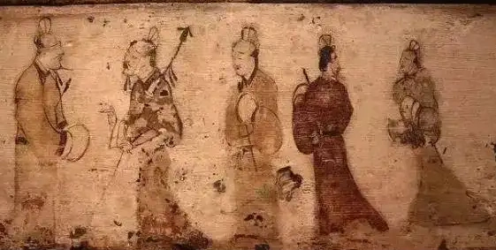 绘画技法:采用传统的绘画方式,线条简洁流畅,通过线条勾勒出人物的外形和动作。色彩上使用了多种颜色进行彩绘,虽然现在部分色彩已不鲜明,但仍能感受到汉代绘画在色彩运用上的特点,色彩的搭配在一定程度上突出了人物的身份和场景氛围。